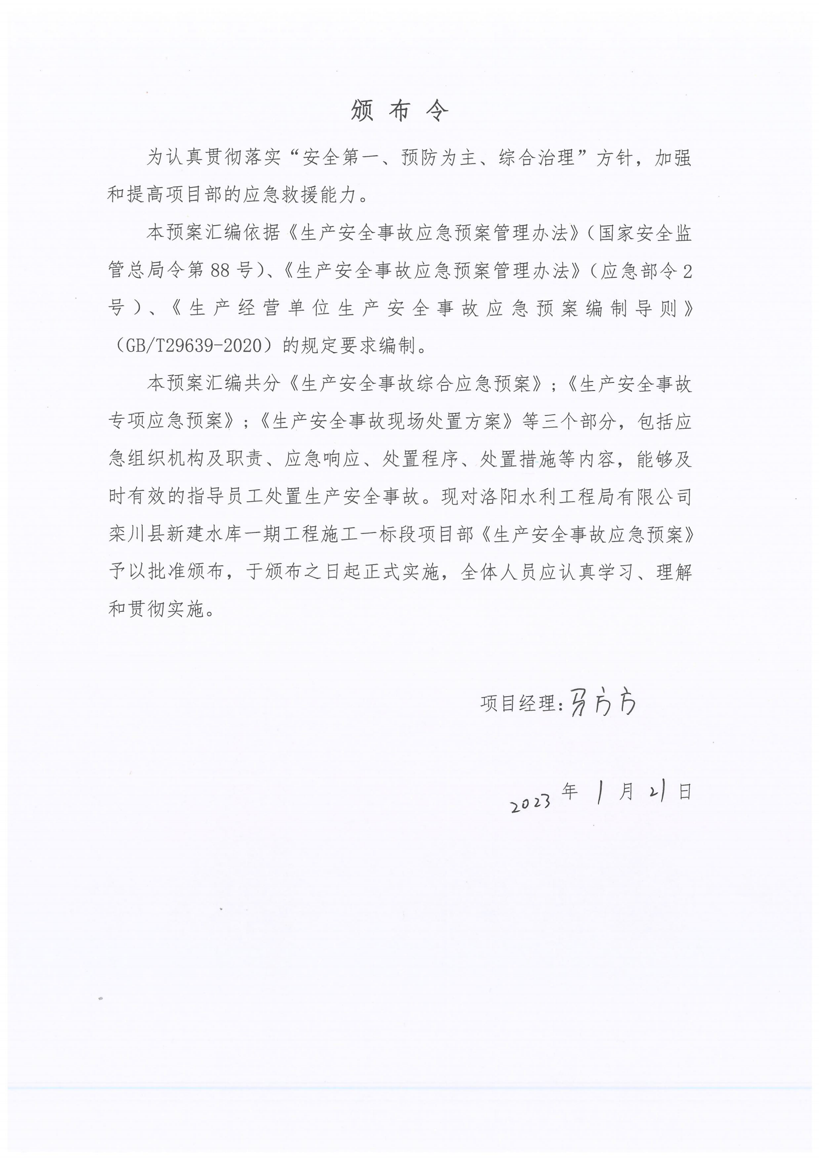 欒川縣新建水庫(kù)一期工程施工一標(biāo)段應(yīng)急預(yù)案