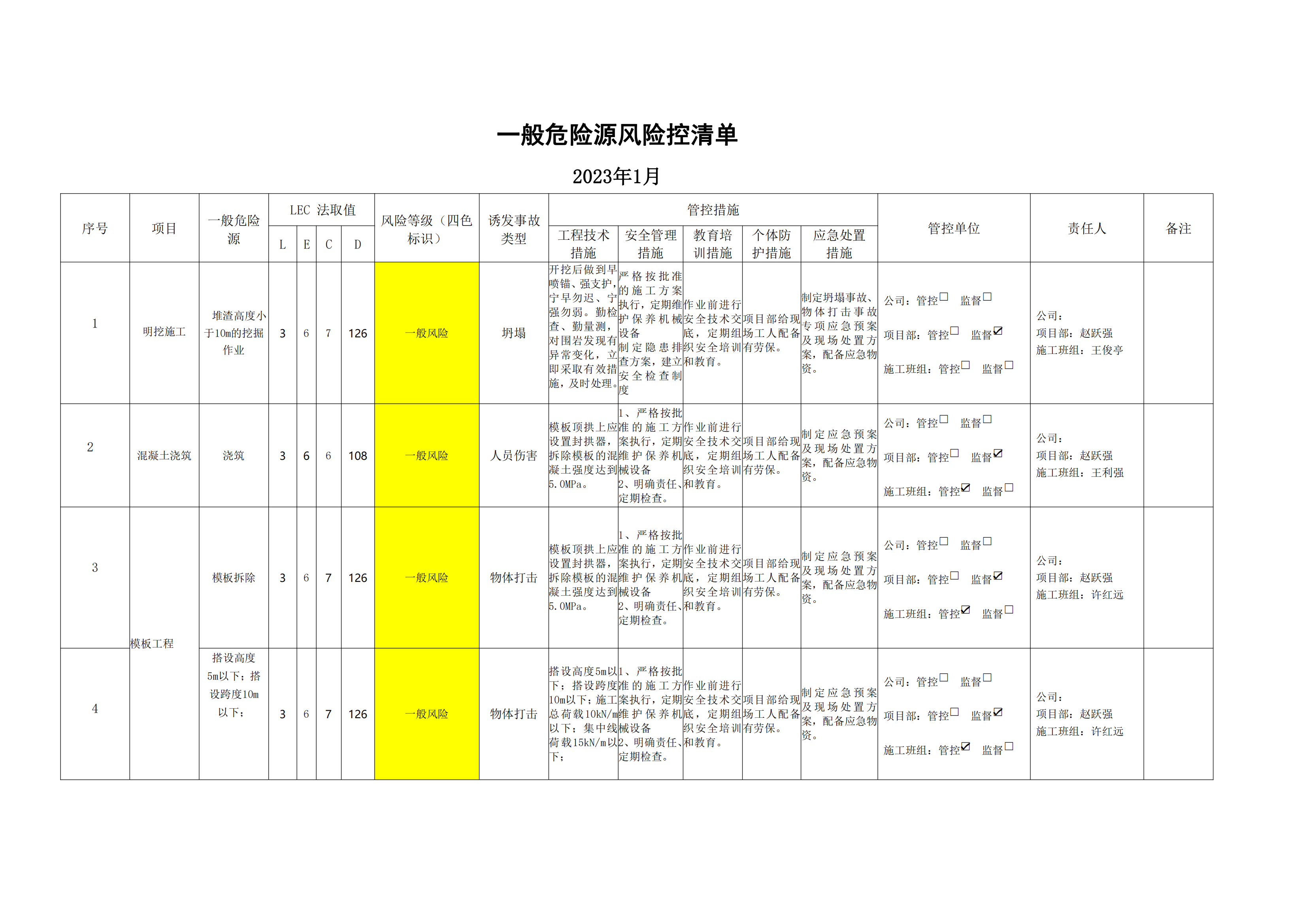 小浪底南岸灌區(qū)7標項目危險源風險分級管控清單(1月)