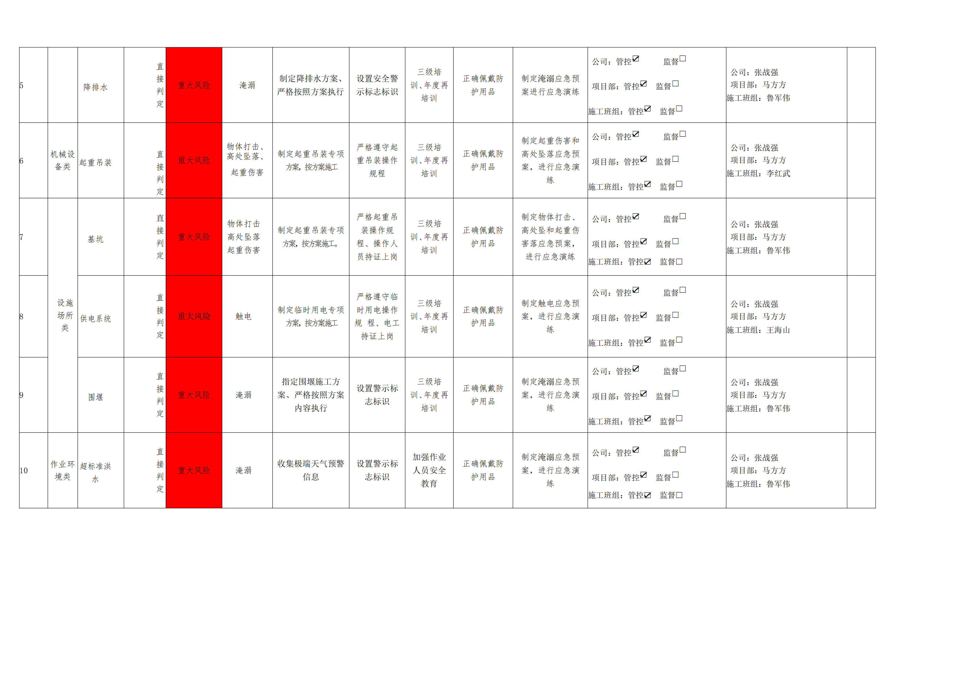 危險源風(fēng)險分級管控清單5月